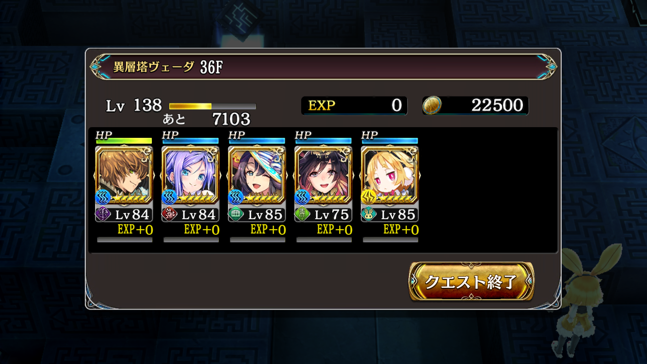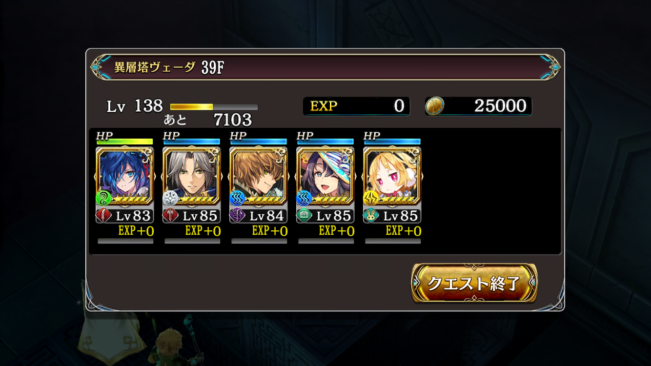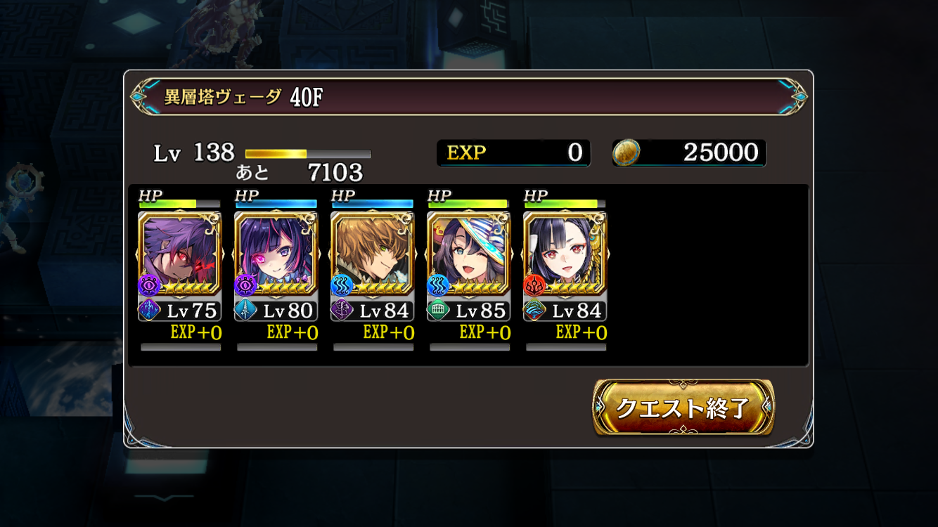 40階で、グダンとローザは攻撃力、オーティマは回復役と補助、チハヤちゃんはクロックアップと風姿花伝の舞、エルリケさんはジェルをばら撒く