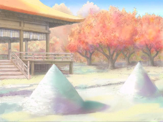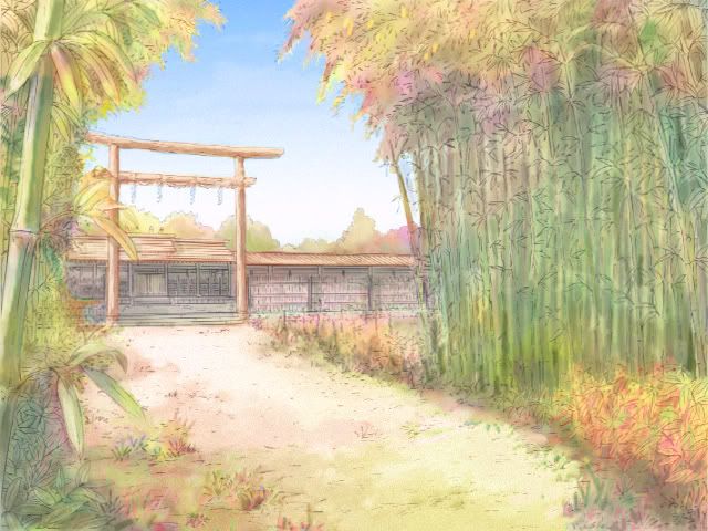 不錯,野宮神社前面是有一片竹林,不過,在還不到野宮神社的地方已經斷了,根本沒有延伸到寺門前,而且方向也不對。CG裡,竹林通道是指通往野宮神社的,也就是門和CG為90度方向,而實際上,野宮神社周圍沒有竹林就算了,方向是180度,就是走過去後要左轉=。=